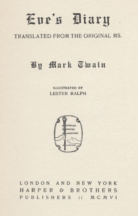 Mark Twain, Eve’s Diary, (1906)